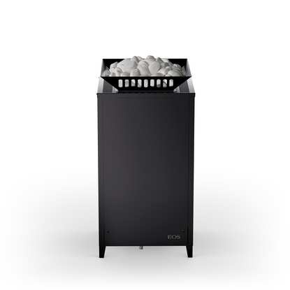 Very space-saving design – only 40 x 39 cm / 1.3 x 1.3 ft footprint. Service-friendly construction - heating elements have with no contact to sauna stones. Optimized air convection and rock store size ensure effective heat-up times and powerful sauna infusions.